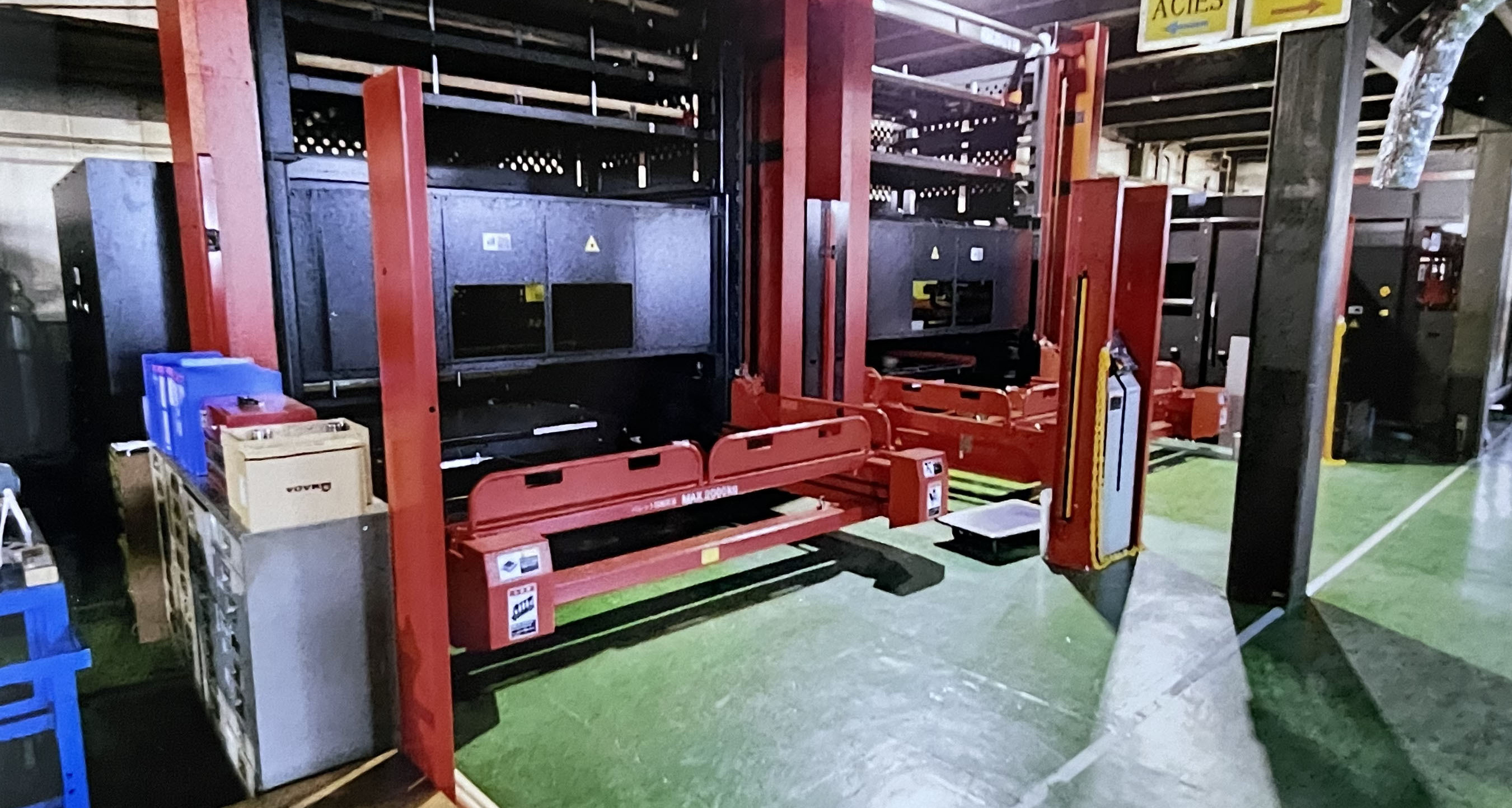 無人搬送搬出テイクアウトロボット付きレーザ加工機
